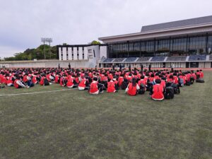 本日は教室に登校後、9時半頃より本校を出発。貸し切りバスにて、和歌山県田辺市の田辺スポーツパークへ向かいました。現地へ到着後、昼食をとり、プログラムを行います。