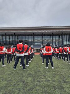 初日のプログラムは、商大堺高校での3年間の生活の基本となるルールや集団生活について、スポーツパークのフィールドや体育館で体を動かしたり、会議室にて、学び考えました。