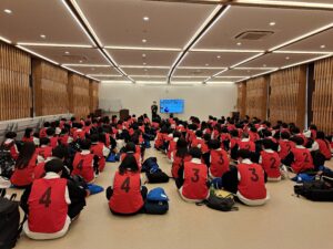 明日から始まる2泊3日の集団生活に向けての、準備や心構えなど、安全で楽しい集団生活を行い、商大堺での3年間の良いスタートとなるよう、生徒たちは気を引き締めて話を聞いておりました。