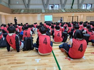 本日は日曜日ですが、本校体育館にて、宿泊オリエンテーションの結団式を行いました。