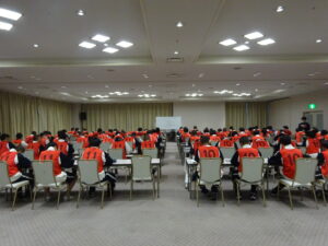 その後、ホテルへ移動し、夕食をとり、夜は、コース別の集会を行いました。