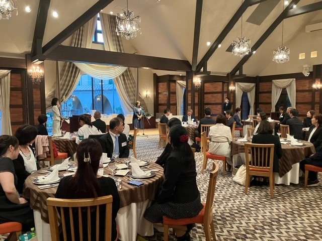 午後6時30分からは,会場を深井のリストランテクラブヴィアージュに移動し,3年ぶりの懇親会を開催いたしました。校長先生や事務長など教職員の方々にもご出席賜り,とても楽しいひとときを過ごすことができました。スペシャルゲストとして,浅田元学校長にもご出席していただきました。