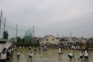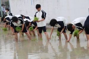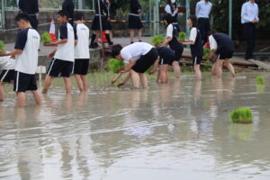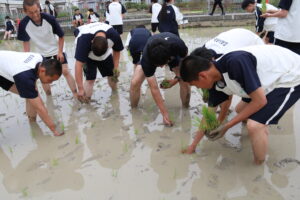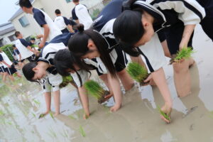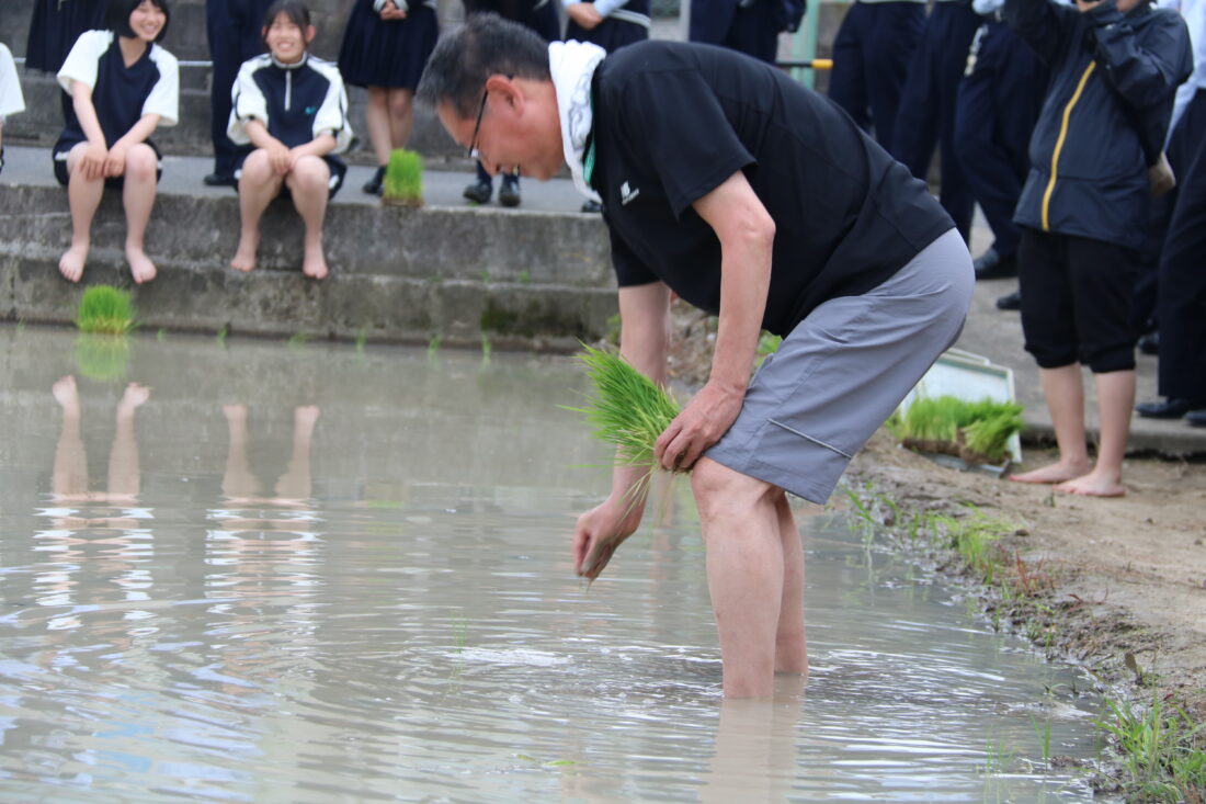 「米作りは人間作り」とも言われ、「米作りは手間暇をかけて育てるほど収穫率が高くなる特徴を持っています。人間を育てていくことも同様に、手をかけるほど人間としての実りは大きくなる」という話があります。田植えを通して何か感じ、気付くことはとても大切なことだと思います。生徒たちもこの気付きを感じ、成長していってくれることを願っています。