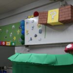 展示発表では、思考を凝らしてたアイデアで来校者を楽しませていました。なかでも今回はジェットコースターが2クラス、遊園地さながらのコーヒーカップなどは大人気で長い列ができ、本校生が子どものように楽しみに並んでいました。