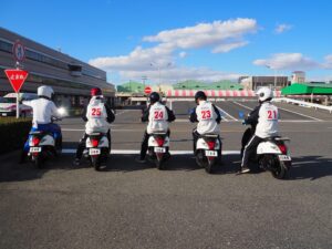 また、実技講習では、原付、自動二輪ともに5人1組で教官にご指導を頂き、実際に運転姿勢や運転技術を学び、校内、実技ともに参加した生徒たちは真剣に講習を受講していました。この講習に参加した生徒たちは、原付や自動二輪の運転する楽しさを改めて感じられたとともに、交通安全をより意識する糧となったと思います。