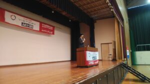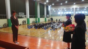 講演後には、生徒代表から謝辞を伝え、花束の贈呈をおこない、栗原さんから記念品のサインボールをいただきました。