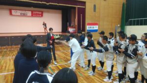 その自らの経験を生徒たちに伝えていただき、各競技のプレーや日常の生活においても、恥ずかしさや失敗を怖れてチャレンジをあきらめるのではなく、行動することで新たな気づきも出てきたり、失敗することが新たなチャレンジのきっかけとなる、とお話しいただきました。