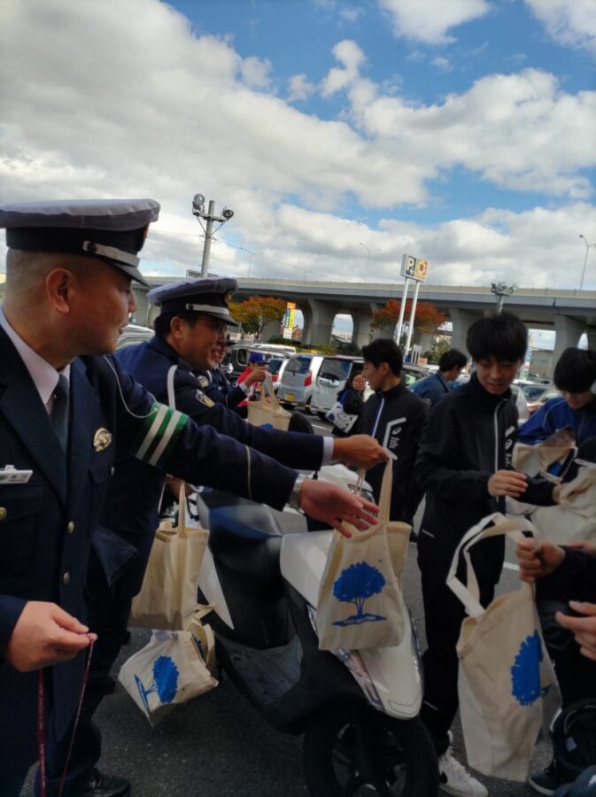 11月1日より、改正道路交通法が施行し、自転車のながらスマホや飲酒運転に関する罰則が強化されました。本校は、自転車通学者が多い学校なため、これからも交通安全に気をつけるよう指導していきたいと思います。男子バレー部の1年生ありがとうございました!