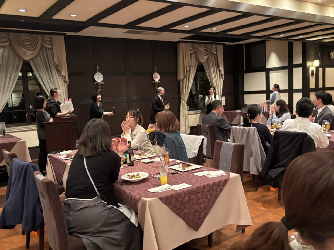 18時30分からは、会場をリストランテ・クラブヴィアージュに移動し、懇親会を開催しました。校長先生、事務長など教職員の方々にもご出席賜り、とても楽しいひとときを過ごすことができました。