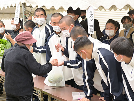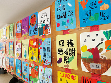 勤労学習(農園実習)の集大成として、2年生全員がグループ学習の発表や作成したポスター・標語などを展示するとともに、手塩にかけた野菜たちを地域の方々に販売します。(さつまいも・大根・キャベツ・白菜・丸大根・ネギ・その他の野菜を販売)